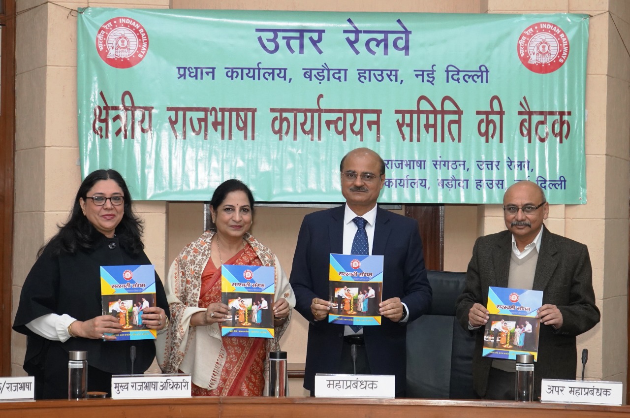 नई दिल्ली। उत्तर रेलवे क्षेत्रीय राजभाषा कार्यान्वयन समिति की बैठक महाप्रबंधक उत्तर रेलवे आशुतोष गंगल की अध्यक्षता में दिनांक 19.12.2022 को कॉन्फ्रेंस हाल, बड़ौदा हाउस, नई दिल्ली में आयोजित की गई। इस बैठक में उत्तर रेलवे के अपर महाप्रबंधक सहित सभी प्रमुख मुख्य विभागाध्यक्षों, मंडलों के अपर मंडल रेल प्रबंधकों एवं मुख्य कारखाना प्रबंधकों ने भाग लिया। सर्वप्रथम महाप्रबंधक ने उत्तर रेलवे, प्रधान कार्यालय की हिंदी पत्रिका सरस्वती संगम का विमोचन किया। इस अवसर पर उन्होंने सभी अधिकारियों को बताया कि संसदीय राजभाषा समिति द्वारा किसी भी समय किसी भी कार्यालय का निरीक्षण किया जा सकता है इसलिए सभी मंडल एवं कारखाने इसके लिए अपनी तैयारी रखें। उन्होंने सभी अधिकारियों तथा कर्मचारियों को हिंदी के सरल शब्दों का प्रयोग कर अपना समस्त कार्य हिंदी में करने के लिए प्रोत्साहित किया ।